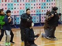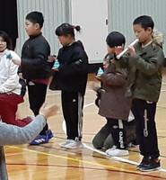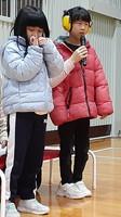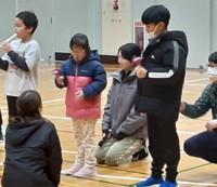 「3年生の発表」では、昨年11月の学習発表会で披露したダンス「ジャングルぐるぐる」を披露しました。「ぐるぐる」という歌詞にあわせて腕を回したり、ペアになった友達と両手をつないで回ったりしました。3年生が笑顔でとても楽しそうに踊っていたため、会場内も盛り上がり、気温により、ひんやりと寒かった会場がほんのりと温かくなりました。 「5年生の発表」では、リコーダーとハンドベルによる器楽合奏「きれいなソラシ」と、日本の女性アイドルグループCANDY TUNE(キャンディーチューン)の「倍倍FIGHT!(ばいばいファイト)」に合わせてダンスを披露しました。軽快で楽しい踊りに盛り上がり、体育館も暑くなりました。 「計画委員会の発表」では、高学年と低学年入れ替え方式で、紅白にわかれて「玉入れ」をしました。制限時間内、一所懸命に玉入れをすることができました。体がポカポカと温まったようで、笑顔でまあるいほほがピンク色に染まっていました。