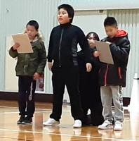 1月26日(月)に学部集会を体育館で行いました。主な内容は、「3年生の発表」、「5年生の発表」、「計画委員会の発表」でした。今回は、2年2組、4年4組が司会進行やあいさつを担当しました。